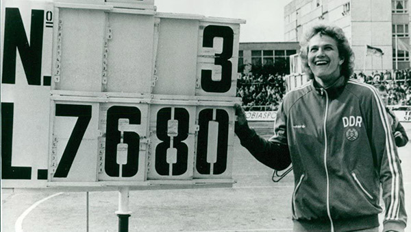 Αρχικά, μικρή μεταβολή είχε η κορυφαία επίδοση όλων των εποχών. Το… ιδιαίτερα αμφιλεγόμενο -λόγω υποψιών για ντόπινγκ- 76.80μ της Γκαμπριέλ Ράινς (Ανατολική Γερμανία) στη δισκοβολία γυναικών είχε μικρή μείωση, από τους 1390β στους 1382β.