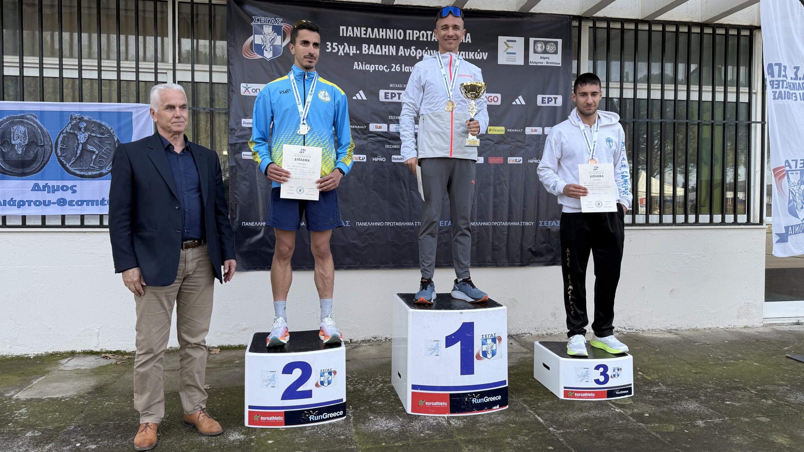 Ο Αλέξανδρος Παπαμιχαήλ κατέκτησε τον τέταρτο διαδοχικό του τίτλο στους άνδρες με 2:37:06 και διατήρησε την 15ετή κυριαρχία του σε εγχώριο επίπεδο στο βάδην. Ο Έλληνας βαδιστής έχει κατακτήσει και τους τέσσερις πανελλήνιους τίτλους στην απόσταση (2021, 2022, 2023, 2025) από όταν θεσμοθετήθηκε για πρώτη φορά το 2021. Το βάθρο συμπλήρωσαν ο Ανδρέας Παπαστεργίου με πανελλήνιο ρεκόρ Κ23 2:49.03, βελτιώνοντας το δικό του 2:54:34 που είχε σημειώσει στη Γερμανία τον περασμένο Οκτώβριο, ενώ τρίτος ήταν ο Γιώργος Κριτούλης με 2:53:25. Δεν συμμετείχαν ο Γιάννης Καυκάς και ο Ανδρέας Καραγιάννης.
