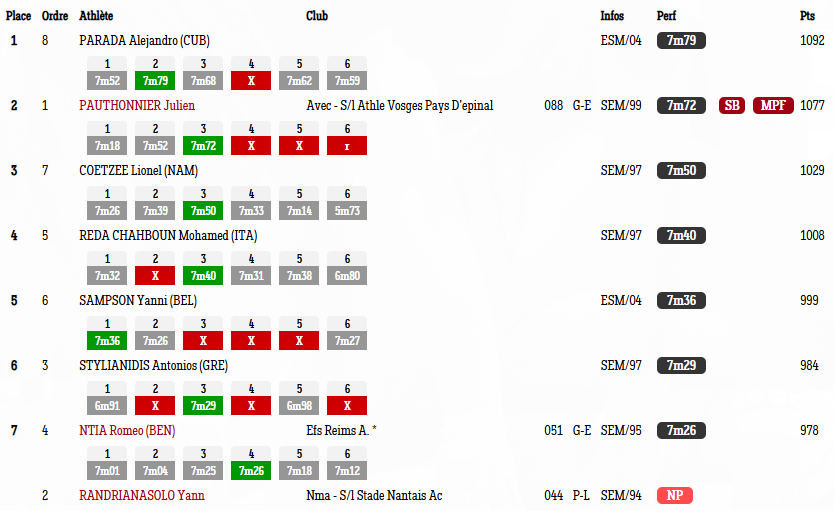 Στο challenger μίτινγκ 3 sauts συμμετείχαν ο Αντώνης Μέρλος και ο Αντώνης Στυλιανίδης. Ο Μέρλος στο ύψος κατέκτησε την 4η θέση με καλύτερο άλμα στο 2.12μ και τρεις άκυρες στο 2.18μ, ενώ ο Στυλιανίδης κατέκτησε την 6η θέση στο μήκος με 7.29μ.