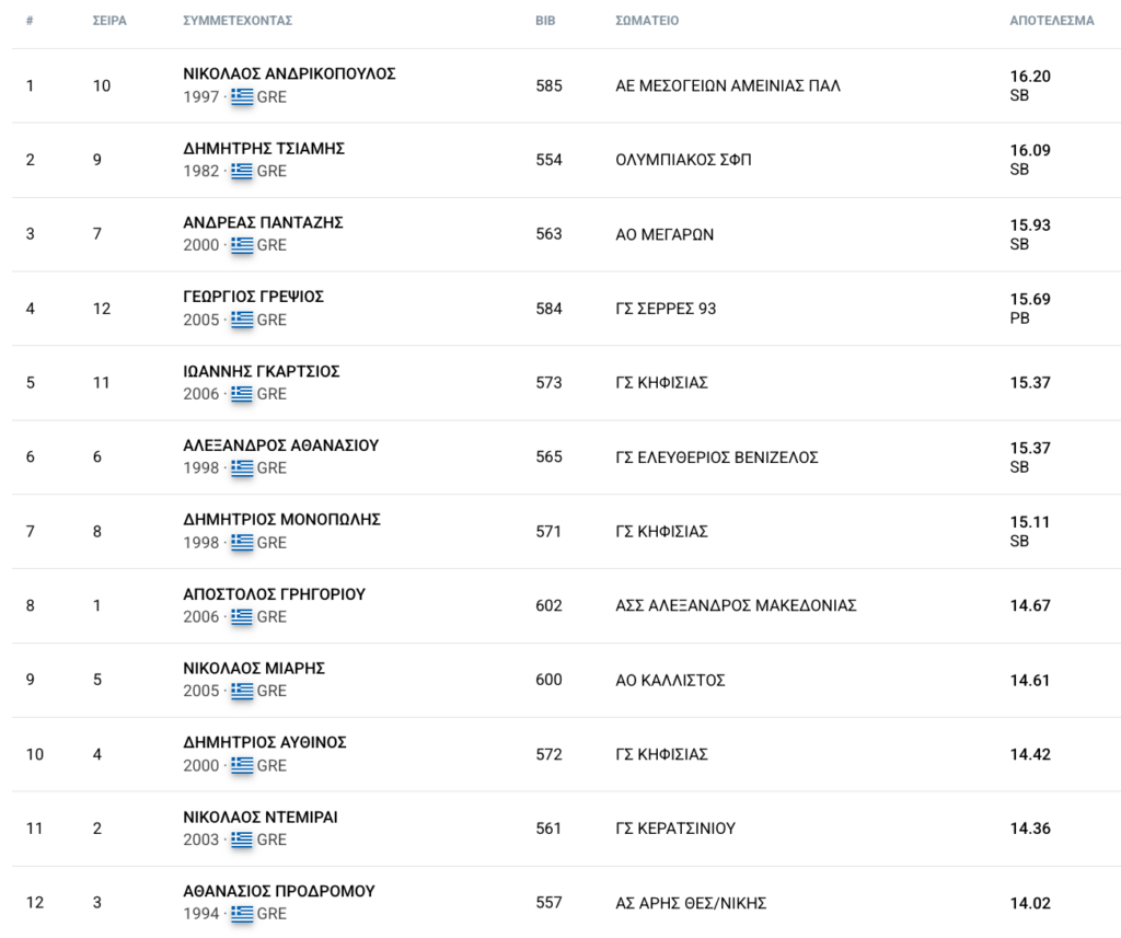 Δείτε παρακάτω την αρχική και την τελική κατάταξη: