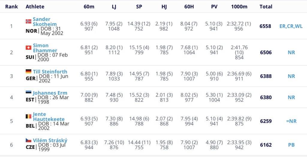 Ο Σάντερ Σκότχαιμ κατέρριψε για δεύτερη φορά το ευρωπαϊκό ρεκόρ στο έπταθλο σε διάστημα μόλις ενός μήνα και έγινε ο πρώτος Ευρωπαίος που ξεπερνά τους 6500β.