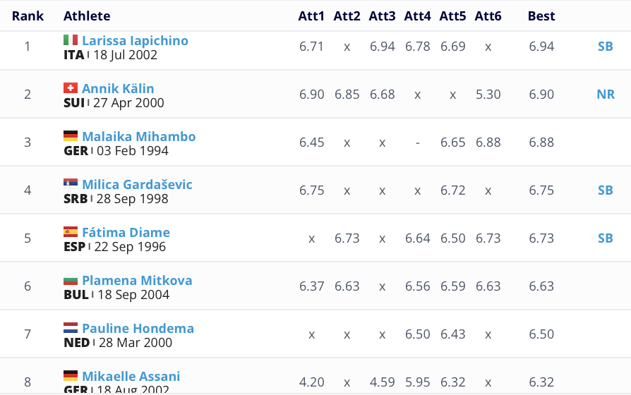 Το αξιοσημείωτο είναι πως η Κέλιν είναι αθλήτρια των συνθέτων και το 6.90μ αποτελεί νέο εθνικό ρεκόρ Ελβετίας.