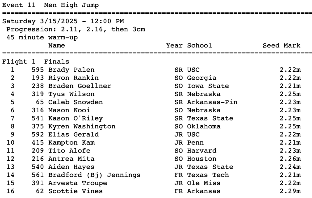 O 20χρονος αθλητής του ύψους, Αντρέα Μίτα, θα αγωνιστεί το Σάββατο στον τελικό του κολλεγιακού πρωταθλήματος των ΗΠΑ όντας ένα από τα φαβορί για τη νίκη.