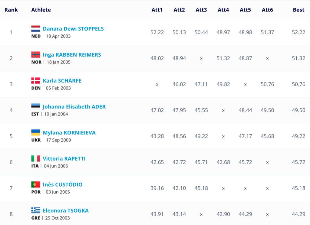 Αυτό είναι το πρώτο μετάλλιο της ελληνικής αποστολής και το δεύτερο διαδοχικό χάλκινο στη σφυροβολία νέων ανδρών, αφού στην τελευταία διοργάνωση στη Λεϊρία ο Ορέστης Ντουσάκης είχε πάρει την ίδια θέση.