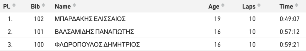 Στα 10χλμ. βάδην Ανδρών ο Ελισσαίος Μπαρδάκης ήταν νικητής με 49.07 και ακολούθησαν οι 16χρονοι Παναγιώτης Βαλσαμίδης και Δημήτρης Φλωρόπουλος με 57.12 και 59.21, αντίστοιχα. Στα κορίτσια επικράτησε η Χαραλαμπία Ζαχαροπούλου (58.11) και ακολούθησαν η Χρυσούλα Χατζηθεολόγου (59.01) και η Αρετή – Μαρία Χατζηανδρέου (62.15).