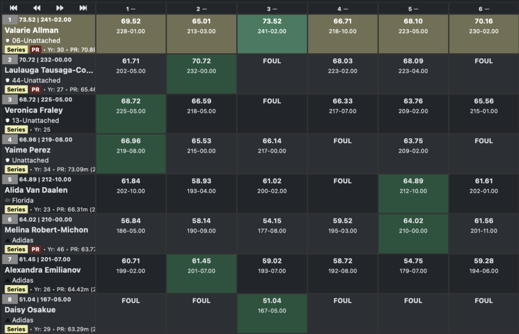 - Βάλαρι Όλμαν (ΗΠΑ) | 73.52μ | 12 Απρ 2025