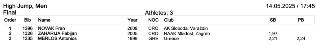 Τη συνέχεια θα κάνει ο Αντώνης Μέρλος, ο οποίος θα επιστρέψει στα στάδια μετά την τελευταία του εμφάνιση στα «Βεργώτεια» το προηγούμενο Σάββατο και θα επιδιώξει κάτι καλύτερο από το 2.20μ που του έδωσε τη νίκη στο μίτινγκ της Κεφαλονιάς. Ο Έλληνας αθλητής έχει την κορυφαία επίδοση μεταξύ των τριών αθλητών που έχουν δηλωθεί στο ύψος των ανδρών.
