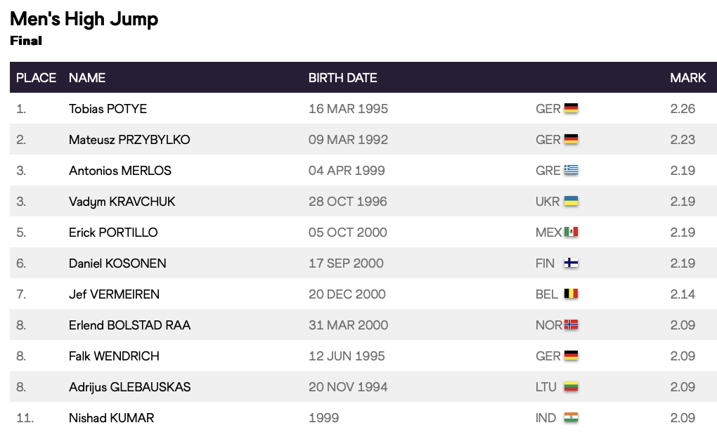 Μερικές χιλιάδες χιλιόμετρα μακριά, ο Αντώνης Μέρλος αγωνίστηκε στο Βronze μίτινγκ «Tag der Überflieger» του Έσσεν και με καλύτερο άλμα στα 2.19μ και πήρε την τρίτη θέση πίσω από τους Γερμανούς Τομπίας Πότιε και Ματέους Τσμπίλκο. Ο Μέρλος ξεκίνησε τον αγώνα του στα 2.14μ, ύψος το οποίο ξεπέρασε με την πρώτη, ενώ το ίδιο εύκολα υπερέβη και το 2.19μ, χωρίς όμως να είναι σε θέση να περάσει πάνω από το επόμενο ύψος του 2.23μ.