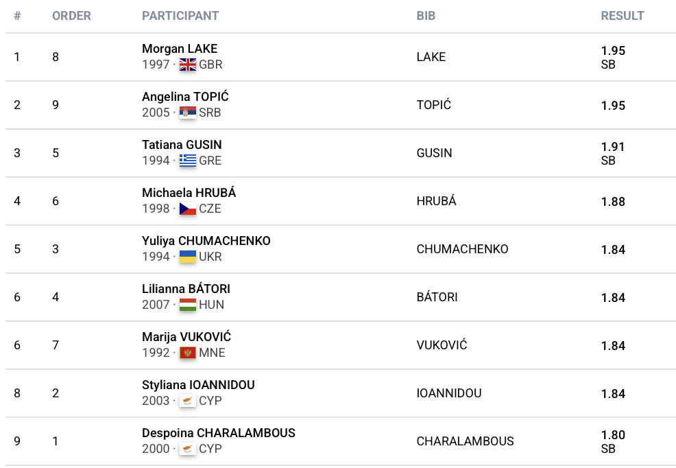 Η Τατιάνα Γκούσιν μονοπώλησε το ελληνικό ενδιαφέρον στο ύψος των γυναικών, σημειώνοντας νέο φετινό ρεκόρ με 1.91μ. Η αθλήτρια της Ιωάννας Σιώμου βελτίωσε το 1.88μ που είχε πετύχει στα Βενιζέλεια και πήρε την τρίτη θέση πίσω από τις Μόργκαν Λέικ και Αντζελίνα Τόπιτς που ξεπέρασαν το 1.95μ με την πρώτη και δεύτερη προσπάθεια αντίστοιχα. Σταθερά κοντά στο 1.85, με καλύτερη προσπάθεια στα 1.84μ έμεινε η Μαρία Βούκοβιτς.