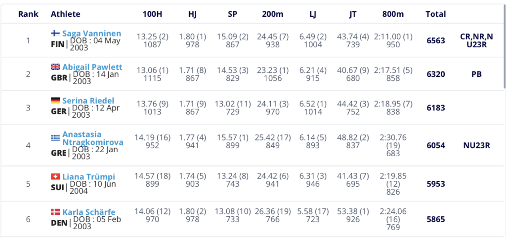 Η Ντραγκομίροβα τερμάτισε στην τέταρτη θέση, πίσω από την Γερμανίδα Σερίνα Ρίντελ, η οποία συμπλήρωσε την κορυφαία τριάδα με 6183β, ενώ εντυπωσιακή ήταν η παρουσία της Φινλανδής παγκόσμιας πρωταθλήτριας στο πένταθλο, Σάγκα Βάνινεν, η οποία έφτασε τους 6563β και έκανε δικό της το ρεκόρ διοργάνωσης της Άιγκα Γκραμπούστε από το 2009, ενώ παράλληλα υπερασπίστηκε τον τίτλο της από το Έσποο το 2023.