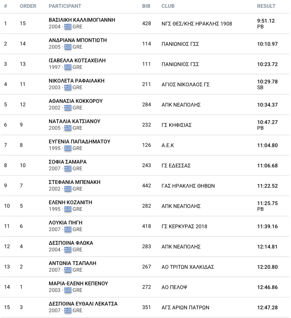 Η Βασιλική Καλλιμογιάννη κατέρριψε επιτέλους το πανελλήνιο ρεκόρ που κυνηγάει τον τελευταίο χρόνο και κατάφερε να ξεπεράσει το 9:54.27 της Αθηνάς Κοΐνη μετά από δώδεκα χρόνια.