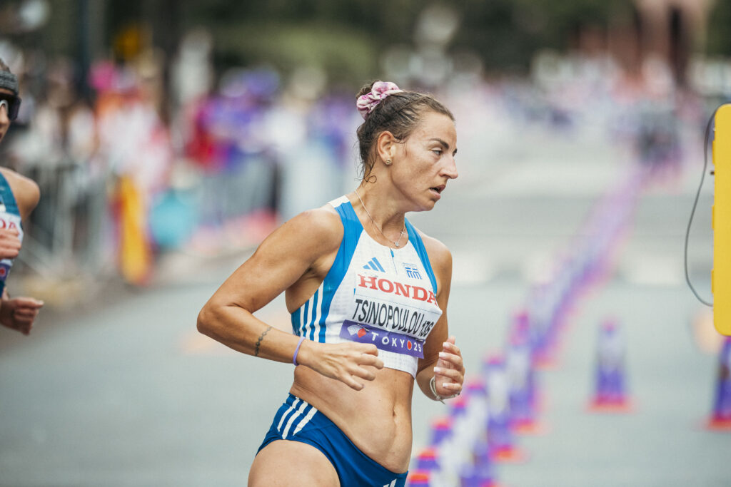 Η Τσινοπούλου εμφανώς χαρούμενη για το αποτέλεσμα μας είπε στη μεικτή ζώνη: «Είμαι πολύ χαρούμενη που βρίσκομαι εδώ. Είμαι μέσα στις πενήντα καλύτερες αλλά ξέρω ότι μπορώ να δώσω ακόμα περισσότερα. Θα προσπαθήσω πολύ ώστε την επόμενη χρονιά να είμαι πολύ πιο δυνατή, γιατί αυτός ο αγώνας μου έδωσε πολύ μεγάλο κίνητρο. Αισθανόμουν καλά, αλλά λόγω των καρτών που είχα, δεν το πίεσα περισσότερο. Πήγα λίγο πιο συντηρητικά για να προσπαθήσω να είμαι όσο πιο έγκυρη γίνεται ώστε να καταφέρω να τερματίσω. Σε γενικότερο πλαίσιο δεν είναι ένας καλός χρόνος, αλλά είναι ένας καλός χρόνος, δεδομένου του ότι τον έβγαλα μόνο με δυόμιση μήνες προπόνηση. Γι’ αυτό είμαι ευχαριστημένη. Το πρώτο πράγμα που έκανα το πρωί ήταν να πάρω βιντεοκλήση τον άντρα μου και την κόρη μου. Να τους δω και να μου δώσουνε δύναμη. Ο στόχος ήταν να απολαύσω τον αγώνα και να δω σε τι κατάσταση βρίσκεται το σώμα μου και πόσο μπορώ ακόμη να το πιέσω».