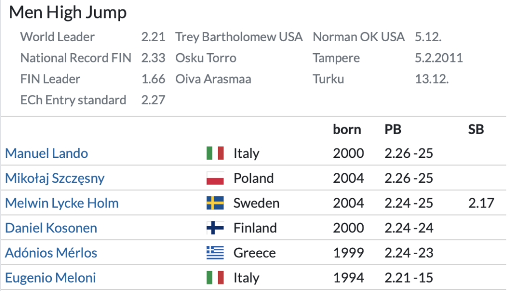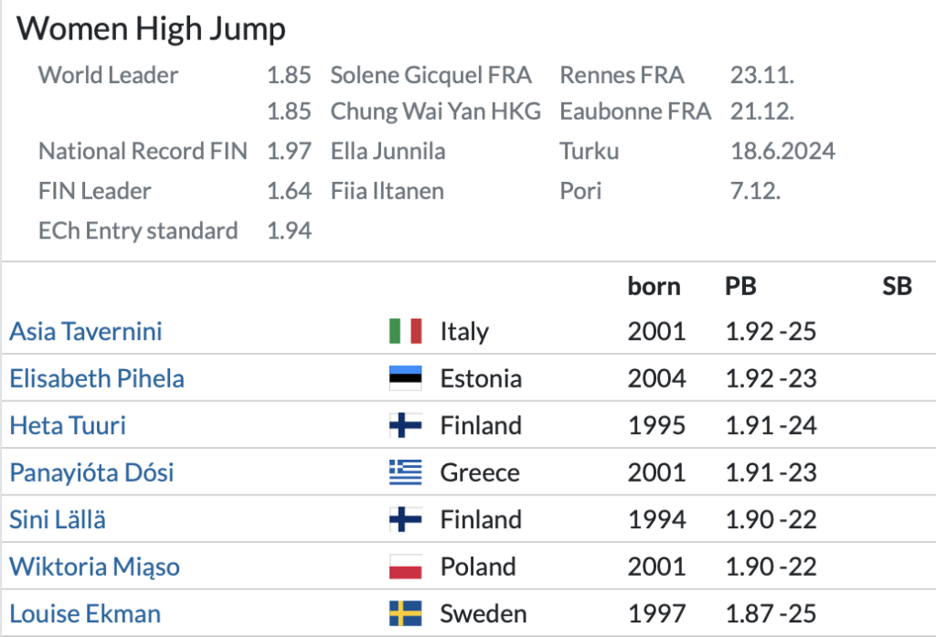 Οι συμμετοχές σε ύψος ανδρών και γυναικών μέχρι στιγμής στο μίτινγκ του Τάμπερε: