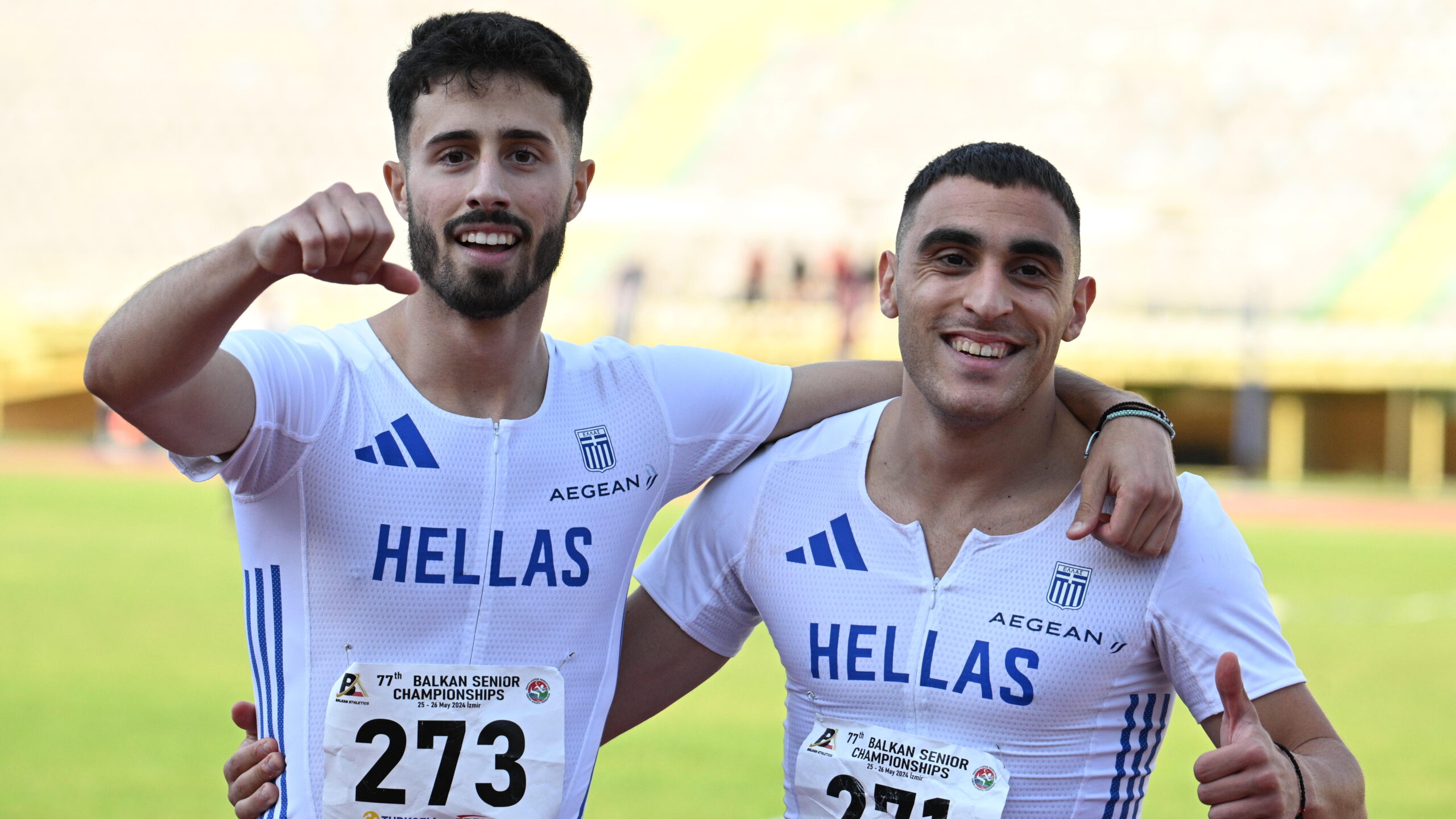 Πολύ καλές εμφανίσεις έκανε και το δίδυμο των ανδρών. Μπορεί να μην κατάφεραν να ανέβουν στο βάθρο που έκλεισε στο 10.23 (!), αλλά με οι Βασίλης Μυριανθόπουλος και Νίκος Παναγιωτόπουλος σημείωσαν 10.28 (4ος) και 10.31 (6ος) με άνεμο 0.9 και μπήκαν στο ελληνικό τοπ20 όλων των εποχών στην κούρσα της μίας ανάσας (17ος και 19ος). Τουρκία έκανε το 1-2 με τους Οζέρ και Κεμαλάι σε 10.17 και 10.18, ενώ τρίτος ήταν ο Μαλτέζος Γκρίλο με εθνικό ρεκόρ 10.23. Με την εμφάνισή τους όλα δείχνουν ότι θα είναι και στην ομάδα της 4Χ100μ για το ευρωπαϊκό της Ρώμης.