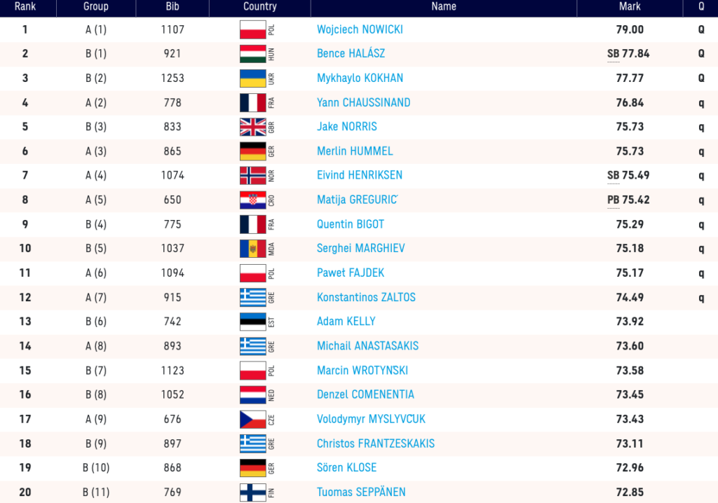 Με το 74.49μ που έριξε στην πρώτη του προσπάθεια στο Α προκριματικό ο αθλητής του Γιάννη Χρίστογλου είχε το εισιτήριο του τελικού, απλά δεν το ήξερε ακόμα. Έπρεπε να παρακολουθήσει όλο το Β προκριματικό γκρουπ από την κερκίδα και να κάνει τους υπολογισμούς στη γενική κατάταξη. Μετά και την τελευταία προσπάθεια του Νορβηγού Μάρνταλ ήταν πλέον σίγουρο ότι θα είναι ανάμεσα στους 12 που θα αγωνιστούν στον τελικό.