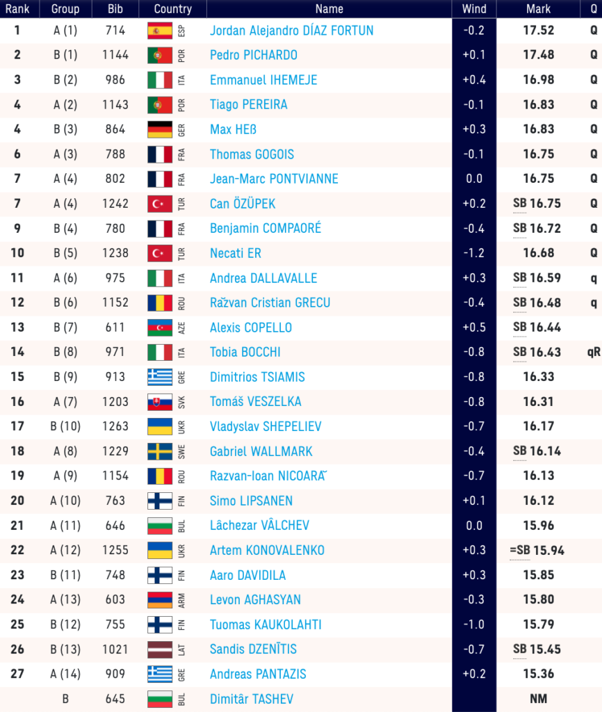 Δυστυχώς, η μέρα δεν κύλησε πολύ καλά για τον Ανδρέα Πανταζή. Ο 24χρονος αθλητής, έχοντας καλύτερο άλμα στα 15.36μ από το πρώτο του άλμα (άκυρα τα επόμενα), ολοκλήρωσε τον αγώνα του στην 14η θέση του Β’ γκρουπ και στην 27η της συνολικής κατάταξης.