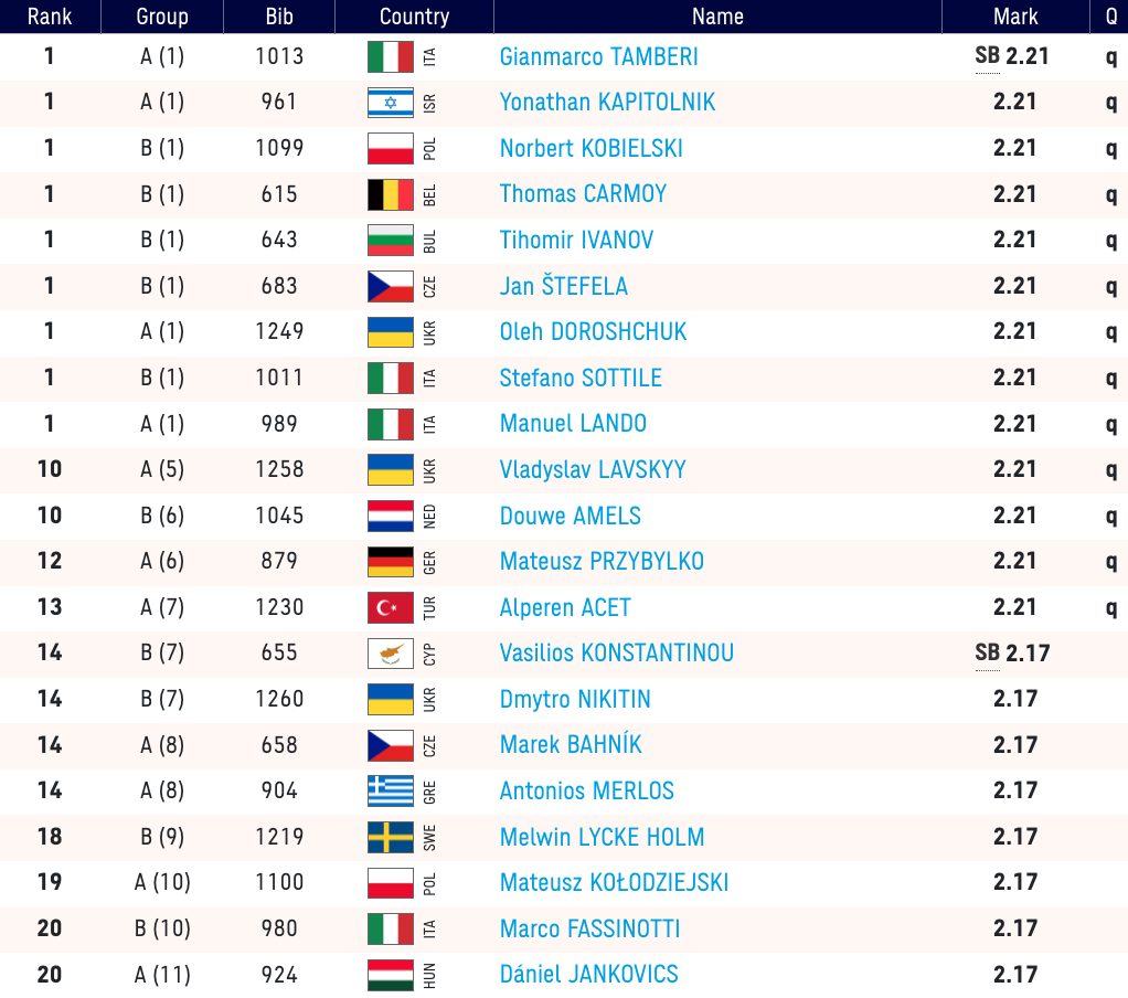 Ο πήχης του ύψους δεν έκανε τη χάρη στον Αντώνη Μέρλο στο 2.21μ, ένα ύψος που σε άλλη περίπτωση θα του έδινε την πρόκριση στον τελικό του αγωνίσματος. Με καλύτερο άλμα εκείνο στο 2.17μ, ο Μέρλος ολοκλήρωσε τον αγώνα του παίρνοντας τη 14η θέση.