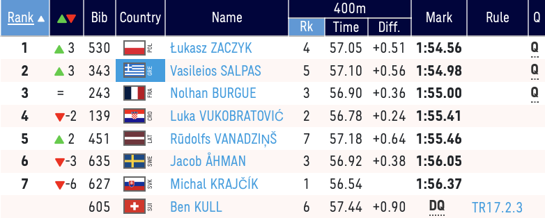Μεγάλη συμμετοχή θα έχει η Ελλάδα στα ημιτελικά των 800μ, αφού μετά την Φλουτάκου και τη Ρούσσου στα κορίτσια, την πρόκριση εξασφάλισε και ο Βασίλης Σαλπάς.