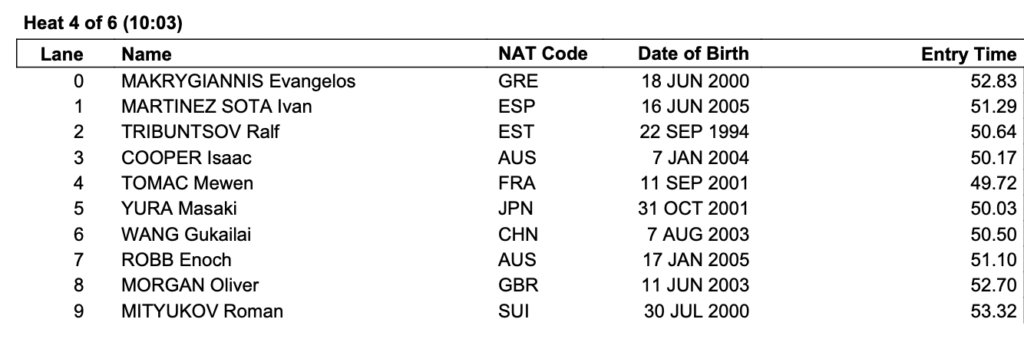 11:03 | 100μ ύπτιο ανδρών | προκρ. σειρές