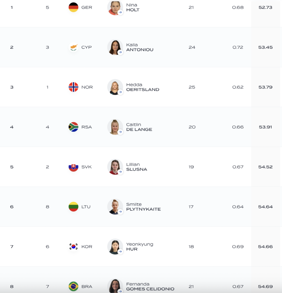 Η Αντωνίου κολύμπησε την απόσταση σε 53.45 στον προκριματικό και βελτιώσε κατά πολύ το δικό της παγκύπριο ρεκόρ 54.29 από την διοργάνωση του 2021 στο Αμπού Ντάμπι. Η Κύπρια κολυμβήτρια ολοκλήρωσε την παρουσία της στα προκριματικά στην 23η θέση. Η ίδια είχε κολυμπήσει χθες τα 50μ πεταλούδα σε 26.47, ξεπερνώντας το 26.54 που είχε από το Ευρωπαϊκό 25άρας πέρσι στο Οτοπένι, και έτσι έβαλε εκ νέου το όνομά της στη λίστα με τα εθνικά ρεκόρ.