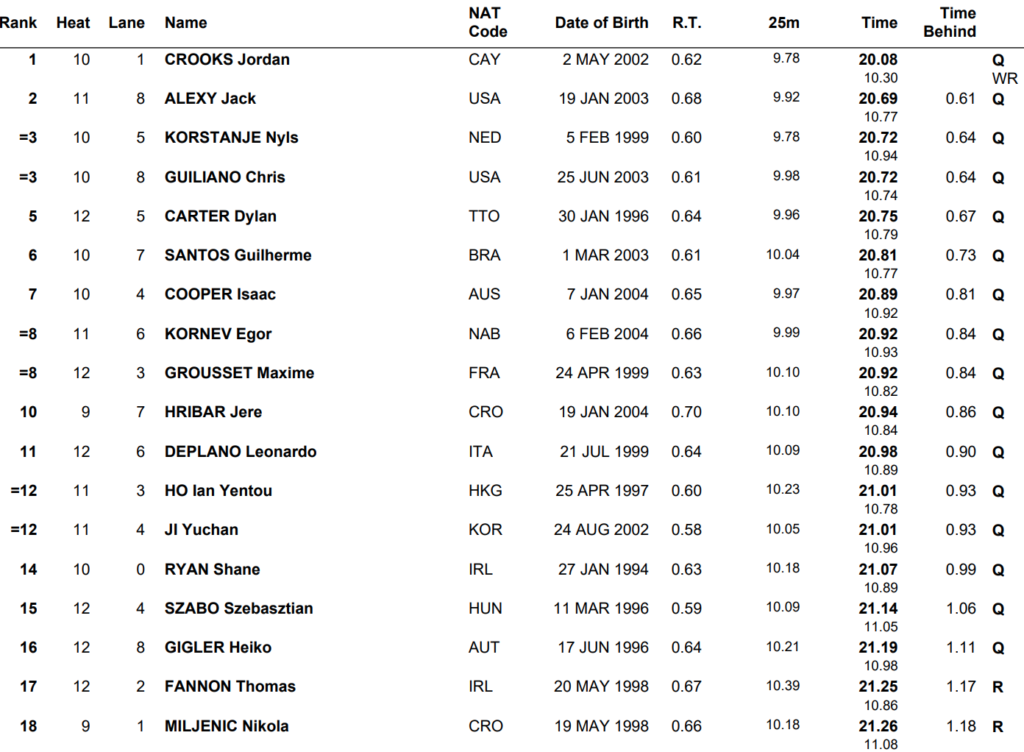 Ο Τζόρνταν Κρουκς από τα νησιά Κέιμαν της Καραϊβικής είναι ο νέος κάτοχος του παγκόσμιου ρεκόρ στα 50μ ελεύθερο, ξεπερνώντας τον σπουδαίο Κέιλεμπ Ντρέσελ.