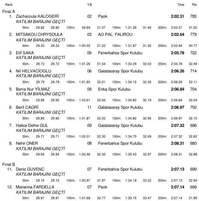 200μ ελεύθερο γυναικών