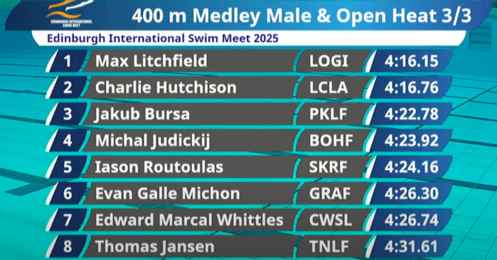 Άλλες τρεις εμφανίσεις σε τελικούς έκαναν οι δύο αθλητές και η μία αθλήτρια του Δημήτρη Παπαχαριζάνου στο διεθνές κολυμβητικό μίτινγκ του Εδιμβούργου.