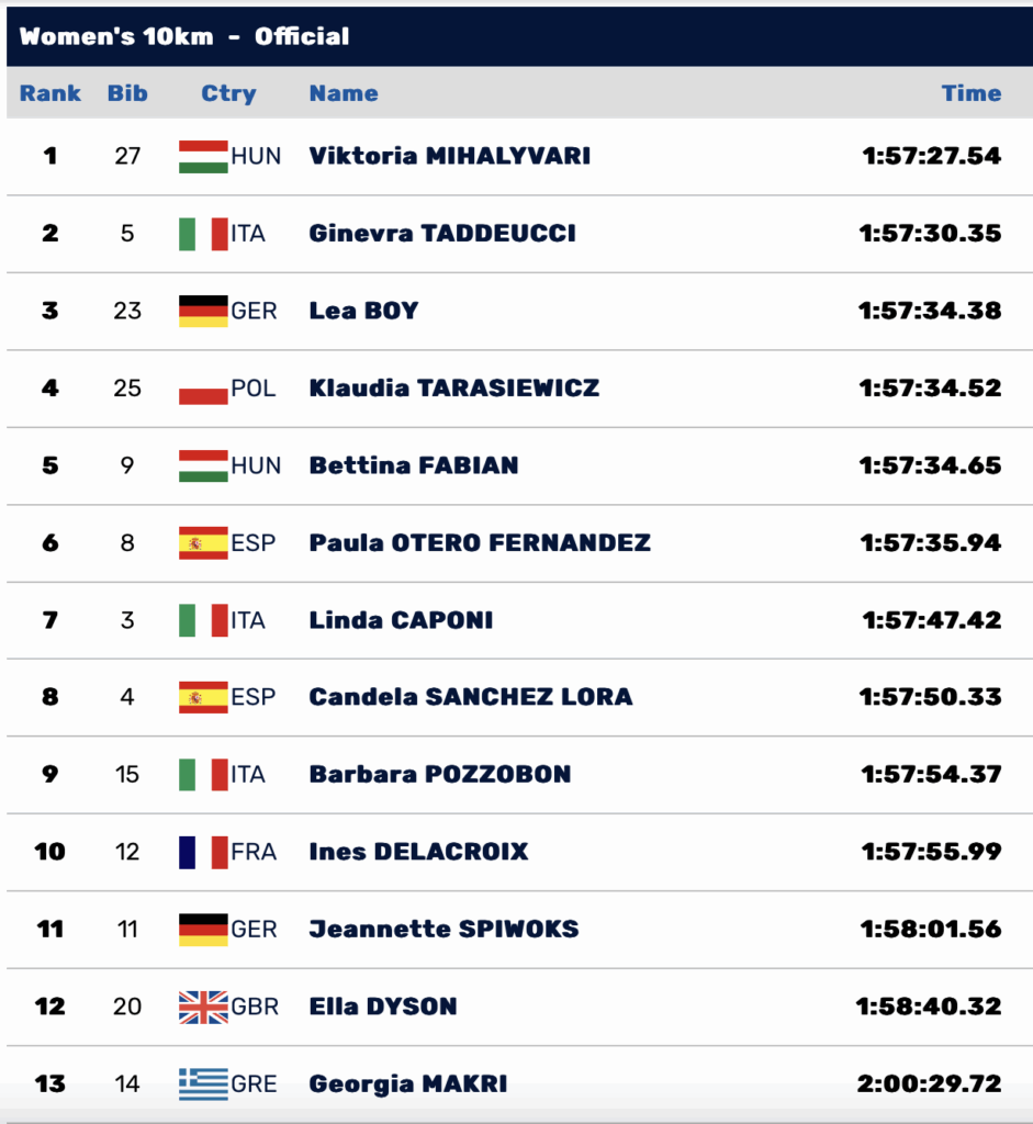 Η Γεωργία Μακρή πήρε μέρος στον αγώνα των 10χλμ στο Ευρωπαϊκό Πρωτάθλημα μαραθώνιας κολύμβησης του Στάρι Γκραντ και κατέκτησε την 13η θέση στο σύνολο των 29 αθλητριών.
