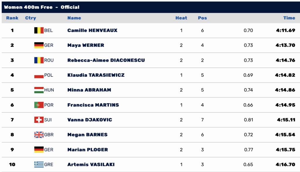Η Άρτεμις Βασιλάκη δεν κολύμπησε όσο γρήγορα ήθελε και έμεινε για δύο θέσεις εκτός του απογευματινού τελικού στα 400μ ελεύθερο.