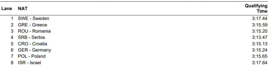 Χρυσό 3:10.50 | Χάλκινο 3:12.70